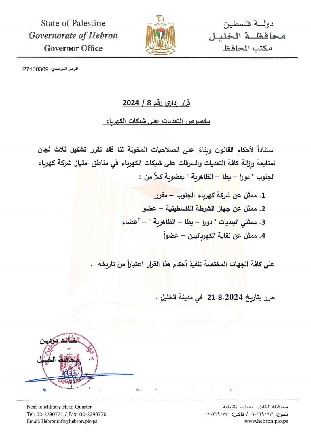 قرار اداري بخصوص التعديات على شبكة الكهرباء