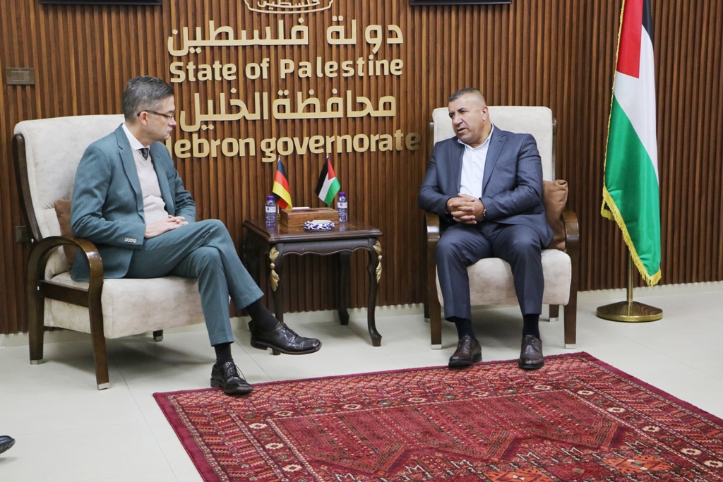 استقبل محافظ الخليل خالد دودين في مكتبه صباح اليوم الثلاثاء ممثل جمهورية ألمانيا الاتحادية لدى دولة فلسطين السيد اوليفر اوفتشا والطاقم المرافق له حيث أطلعه المحافظ على الظروف الصعبة التي يعيشها المواطنين على كافة المستويات جراء انتهاكات الإحتلال ومستوطنيه داعياً للضغط الفوري على حكومة الإحتلال لوقف إرهاب المستوطنين في جميع ارجاء المحافظة . دودين تحدث عن الجهود التي تبذلها الحكومة الفلسطينية بكافة مؤسساتها المدنية والأمنية في التخفيف من معاناة المواطن الفلسطيني خصوصاً في المناطق المغلقة ومسافر يطا وتجاوز العراقيل والسياسات التي يفرضها الإحتلال والتي أثرت على جميع القطاعات وتحديداً فيما يتعلق بالصحة والتعليم والإقتصاد . المحافظ خلال اللقاء وضح العديد من النقاط التي يتم طرحها في الإعلام الغربي والتي تتنافى مع الواقع مؤكداً أن دول الإتحاد الأوروبي عليها واجب في حماية الشعب الفلسطيني ومساندته حتى نيل حقوقه المشروعة وإقامة دولته المستقلة . السيد اوفتشا من جانبه وجه الشكر للمحافظ دودين على الشرح المفصل مؤكداً أنه يدرك التحديات الموجودة في المحافظة سواء بسبب الجيش أو المستوطنين مشدداً على مستوى الإتحاد الأوروبي تم اتخاذ اجراءات عقابية ضد بعض المستوطنين ومنظماتهم . وأضاف " نبذل الجهود للحفاظ على البلديات والتجمعات في مناطق "ج " وندعمها حيث وقعنا اتفاقية لدعم البلديات بقيمة 23 مليون" .
